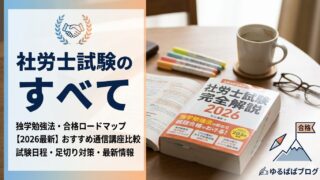 【2026年最新】6回落ちて7回目で合格した「ゆるぱぱ」が教える、社労士試験最短合格ロードマップ。独学勉強法のコツから、おすすめ通信講座比較、足切り対策、2026年試験日程まで、合格に必要な情報をすべて凝縮。40代からでも働きながら合格を掴むための戦略を公開中!